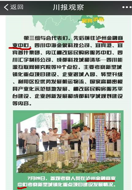 泸州金融商业中心【立即博世纪城】作为四川省服务业重点项目,是省委全委会确定的泸州两个实地考察点之一。
